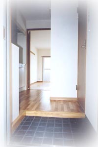 ![]() 廊下から玄関ドアを少し控えた アルコーブ。プライバシーを守り落ち 着ける玄関スペースを演出。 (タイプによりアルコーブの奥行き寸法は変わります。) 玄関アルコーブ |