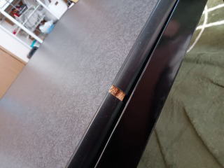 コタツ天板の樹脂モールの継ぎ目が少し開いています |