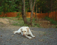 キャンプ場には他にいくつかドッグランもあって、あたしも遊ばせてもらったけど、この自分達のバンガローの柵の中だけでも十分やわ。あたしももうそんなに暴れる