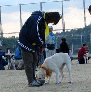 ナイトくんの脚側行進や。アイコンタクトばっちり。