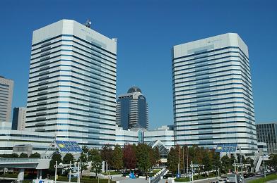 JR海浜幕張駅を降りてすぐの超高層ビル群の入り口にあります。D棟はB棟の東側にあります。 |