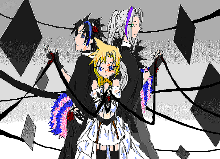 背景中央のレースは勘弁してください(笑)。 下絵にだいたい3時間、着色5時間(クラ2時間、ザク&セフィ計1時間半、背景+紐1時間半)かかりました。 ザク&セフィの髪メッシュはなんとなくで入れたんですが、意外と違和感ないのにびっくり。 まぁセフィはMoiraでエレフ役やらせたからまだわかるんですがザックスが…。 グラデ上手くいってよかったとホッとしてます。 製作BGM:Fate:Rebirth(え)、我が家の犬達のおねだり声(笑)