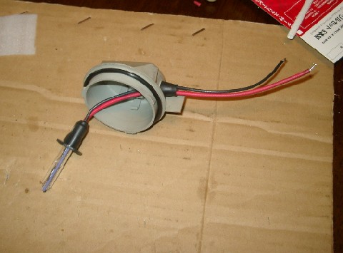 カプチのヘッドライトは通常のH3のハロゲンです。 私も明るいタイプに変えたのですがまだ暗い。 で、巷で流行のHID化を試みます。ポン付けのものもありますが 高いのでいけそうな物で代用して加工します。 今回入手したバーナーは8000kです。とても蒼白い光を放つ そうですので早々に加工します。 |