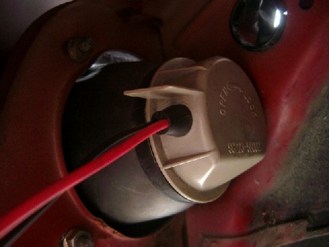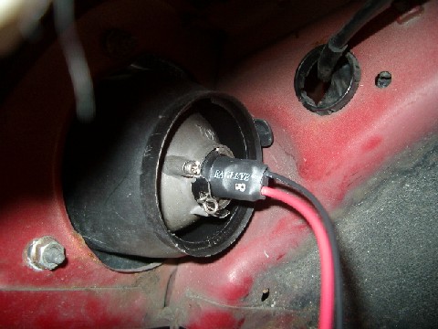 | バーナーからの配線を防水ゴムを通してから車に取り付け ます。 (写真の状態で取り付け) |