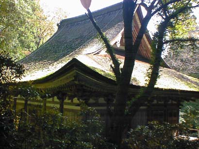 穏やかな柿葺(こけらぶき)の金堂の屋根の美しい曲線に、