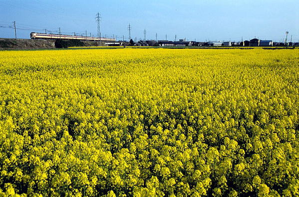 ●花絨毯 7029M 特急「雷鳥29号」 JR西日本 湖西線 新旭→近江今津 (滋賀県高島市新旭町餐庭) 2007.04.15 MINOLTA α-7/TAMRON AF ASPHERICAL LD 28-300mm F3.5-6.3 何となく車を南に向けて走らせていると、家の隙間から黄色いモノが見えました。凄い面積でしかもキレイに菜の花が咲き誇っています!!これは撮らねばと現場を目指しましたが、通過まで時間が無く、ギリギリでこのアングルを見つけて撮りました。 |