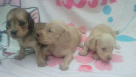 | ミニチュアダックス 7月17日生まれ 父 ブラック・クリーム 母 シェーデット・クリーム (チャンピオン直子) 完売しました。 ありがとうございました。 ![]() |