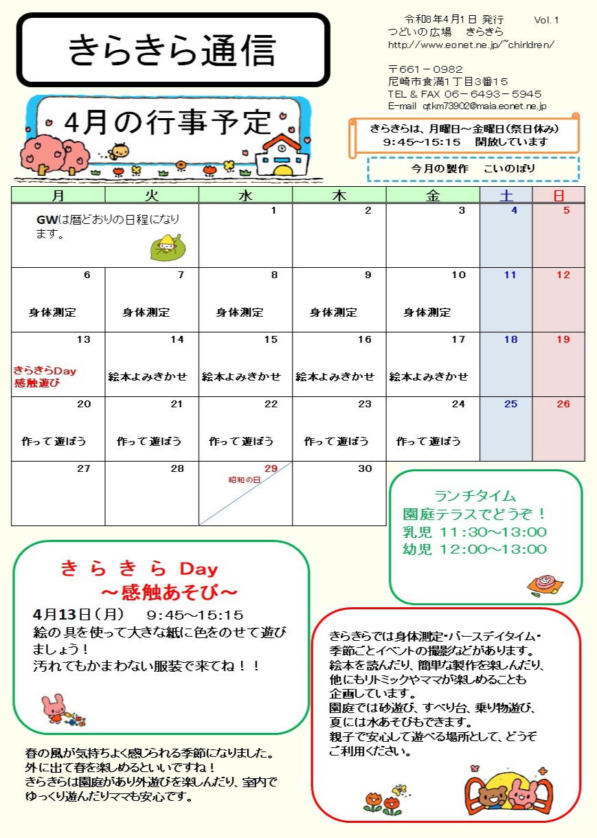 NPO法人 子育て支援センター園田北 つ ど い の 広 場 ” き ら き ら ”