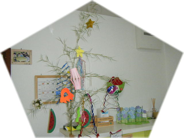 7月は七夕です☆製作はモチのロンな七夕飾り〜!毎年じぃじ先生が用意してきてくれる、本物の笹にお飾りを皆で作って飾っちゃいます♪