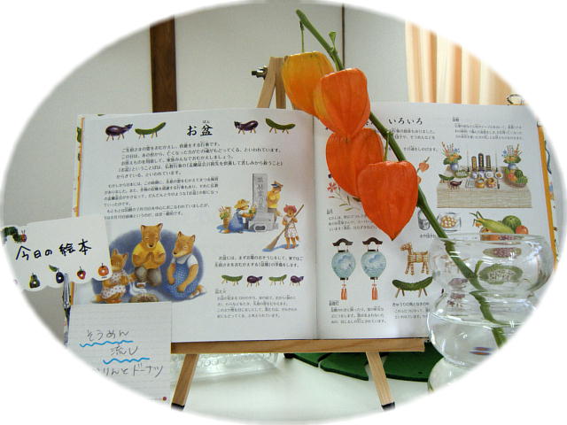 8月にはお盆休みがあるので、ご実家に帰省されたりする親御様とご一緒に、お盆という行事に触れるKidsちゃんも、いらっしゃることと思いますが、みなさまがってことは中々難しいことだと思われます。 chouchouでは、園長が日本の伝統行事というか、四季折々の年中行事に重きを置き、日本の心も大切に育んでいければと、毎年お盆(正式には盂蘭盆会)というKidsちゃん達にはまだちょっぴり難しい行事に、わかりやすーく触れて頂く機会を設けております