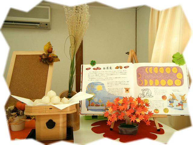 9月は、前月に引き続き日本の文化を学ぼう第二弾☆「中秋の名月」を学んで、お月見を知っちゃおう♪デス そしてお散歩日和の清々しい季節になり、秋の訪れも肌で感じることができる絶好のチャンスですから、普段より足を延ばしてお出かけしたりとお外に出ることが多くなるのもこの季節ならではですね♪