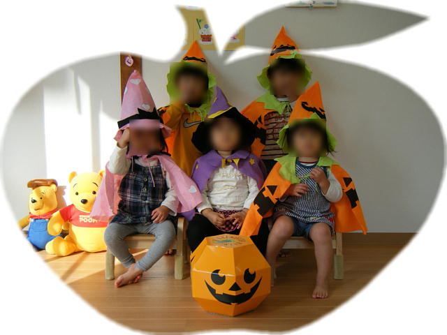 とりっくおあとり〜と♪そんな、Kidsちゃん達のかわいい声が響く、ハロウィンパーティー☆お菓子を釣り上げちゃう遊びや、Cuteなかぼちゃにちなんだ製作等、楽しい事満載! 10月の初めから、chouchouはHalloween仕様になるので、送り迎えでお越し頂く際、親御様にも楽しんで頂けてますでしょうか。そしてもちろん、最大のお楽しみ、Kidsちゃん達の仮装姿は、毎年しっかりパチリと撮らせて頂いております!この記念撮影は、ご好評を頂いております♪