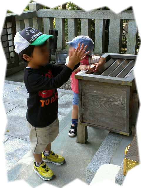 また、七五三についても、日本の伝統行事ですので、該当年でないKidsちゃんもおられますが、七五三を祝います。 もちろん、製作で作った袋に園長が用意した千歳飴も入れて、Kidsちゃんたちみんなに、おうちへお持ち帰り頂きます。そして状況が許せば、近くの神社へもいっちゃいます☆さすが2歳児さん、上手にお参りできているでしょ?