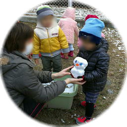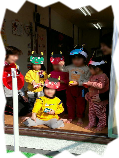 2月は、節分ですね☆製作で鬼のお面を作ったら、2/3は豆まきも体験しちゃいます!日本古来の、季節行事ですからね☆でも、かわいいKidsちゃんのつける鬼のお面は、全然怖くなーい(笑) そしてぇ〜、年に数回ですが、chouchouにも雪の積もる日があります。特に、前庭の草の上に、雪が積もりやすく、chouchouのお庭の外遊びで使う、テントウムシくんのお砂場の上にも、まっ白で綺麗な雪が!Staff先生手作りの雪だるまや雪うさぎちゃんと、お昼が近づくとすっかり溶けてしまうことが殆どなので、みんな時間を惜しんで雪遊びを楽しみます☆
