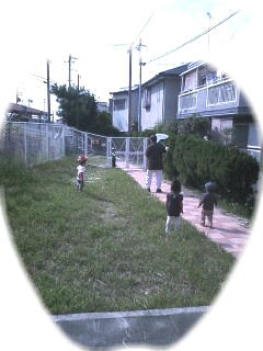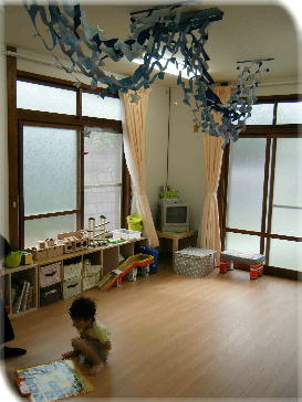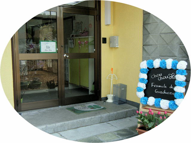 chouchouのお庭は、とても広くて、外遊びがし放題!(笑)左は、夏のお庭の様子。濃い、緑の芝の上を、Kidsちゃんたちが元気に走り回っております。 中段は、春や、秋のchouchouのお庭です。秋には、色々な声を聞かせてくれる虫たちもたくさん集まってくるので、Kidsちゃんたちも耳を澄ませて秋を体で感じております。 最下部は、入口の階段の上から見た、chouchouの全体像。ちょっと、お庭から建物までの距離がありすぎて、わかりづらかったかしら?(苦笑) |