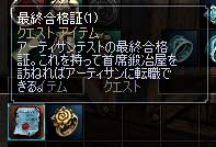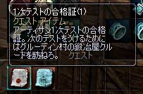 | 「2次テストの合格証」を持った状態で、グルーディン村の鍛冶屋クルートに話し掛け、「最終合格証」を入手する。