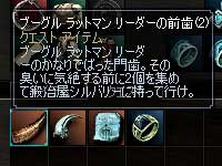 | スパイン鉱山地帯のダンジョンに出現する、ブーグル ラットマンから、「ブーグル ラットマンの前歯」10個とブーグル ラットマン