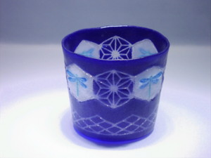 2014伊丹国際クラフト展入選「もみじ一葉水面に揺れて」 ガラス細工の酒器です。