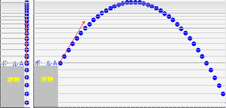 【参考1】 ボールの初速度を変えずに,投げ上げる角度だけを変えて,ボールの動きを観察して下さい. 上向きに何度で投げ上げると,ボールが最も遠くまで到達しますか? この角度を,計算で求められるといいですね. |