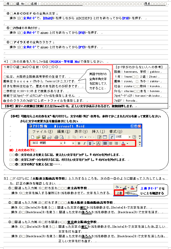 ワードの起動方法,文字の入力・文字の変換・訂正等を学習します.