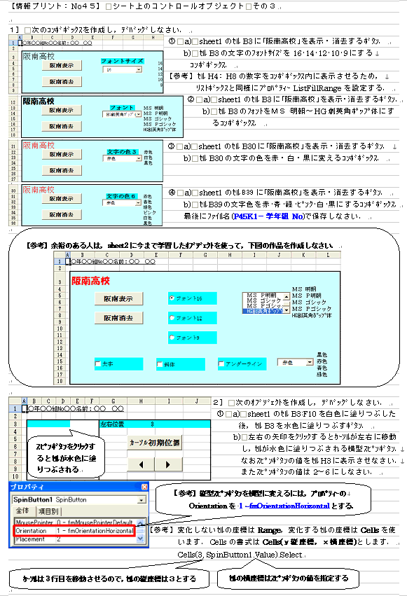 エクセルのシート上に貼り付けたコントロールオブジェクト(コンボボックス・スピンボタン)で,シート上のデータを操作する方法を学習します.