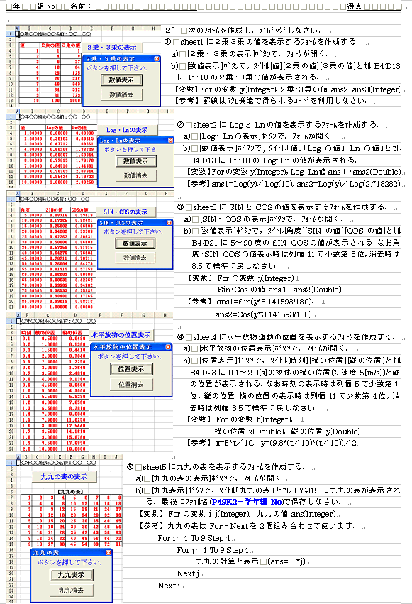 For〜Next文を使って,いろいろな関数の値を表形式で表示する方法を学習をします.