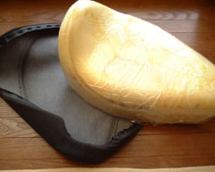 | ノーマルシートのブラックが車体のブラックと カブってちょっと「なん」だったので 自作でシート張り替えです。 |