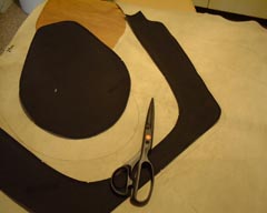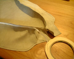 | ふつうは針で布を合わせるんですが 革なので両面テープで合わせました。 |
