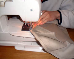 | だだだだだ 嫁さんに使い方を教えてもらって縫いました。 だだだだ・・・・だ・・・・・だ ウィーンウィーン 家庭用のミシンでは4枚併せて縫うのがぎりぎりでした。 |