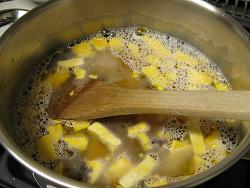 1.石けんを小さくカットし、お鍋に入れます。 |