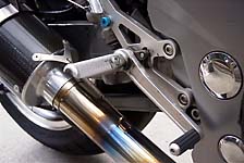 ’97・3・8、走行距離約7,300kmで交換。ハンドル、シートときてポジション関係は残すところステップのみとなっていた。STDの位置は前寄りに感じられ、なにより足を出した時に干渉する。特に跨ったまま後ろへ進もうとすると非常に邪魔で、足を後ろへ送る度にピョコタンピョコタンとステップを互い違いに足で跳ね上げ、うっとうしくて仕方がない。ポジションを見直すためにも交換しなければ、と思いつつも、実際にどの程度変更すればいいのか数値がわからず、また社外品のバックステップはほとんどがステップ固定式で、センチ単位で変更しても結局足に干渉するのではないかという疑問がつきまとい、予算もないので1年余りほったらかしにしていた。