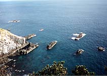 調子に乗ってドンドン進んでいくと、佐田岬半島までもう少しってところで道路状態が激変。道幅が1車線となって、ウネウネと峠を登り始めました。しかもかなりタイト。こりゃZZRにゃつらい!去年の南紀R260を思い出すなあ。…とそんな悠長なこと言ってる場合ぢゃないぞ。右へ左へ振り回されてヘトヘトになってきた。横見たら断崖絶壁だし(笑)。やっとのことで峠を越えたと思ったら、やっぱり下りもウネウネウネウネ〜(笑)。もういいってば!ただ、南側は景色が開けて陽も当たるのでいくらか気分的には楽。ふと辺りを見てみれば、人が登るのも大変そうな急斜面は全部みかん畑でした。これどうやって収穫すんの?こんな地形さえ利用するなんて、人間ってなんてしたたかなんだ、と変なところで妙に関心してしまいました(笑)。