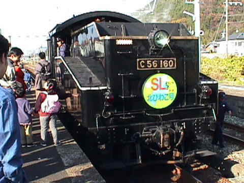 乗客は一斉に降りてきます。お目当てはC56-160です。子供たちは運転台に載せて貰い、写真を撮ってもらうこともあります。