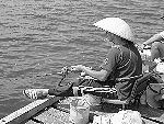 2000/5/20福井県敦賀湾ボート釣り 同行釣人 ASTRO 敦賀湾で豪華クルーザー「ルーラ号」 足でペコペコ空気を入れます(*^^*ゞ なんか?釣ったけ?忘れました``r(^^;)ポリポリ |