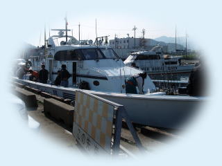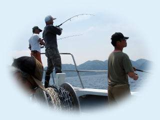 2009年5月10日(日)ゴールデンウィーク前から絶好調だった青物を求めて、チーム仲間のホリホリさんと、東舞鶴港から出港しているルアー船『スーパーコーリン』さんに乗船し、二人にとっては一年以上ご無沙汰していたオフショアジギングに行ってきました。コーリンさんには、最大級のスーパーコーリンセブン、フロントアイランド、アンビシャス、の3艇があるのですが、この日はアンビシャスでの出船となりました。フロントアイランドの方のお客さんを見ていると、何と『ビッグフィッシング』というTV番組でおなじみのチーム・ジグフィットの会長をはじめ、各メンバーさんたちではないですか。大きなテレビカメラも2台セットされ、番組の収録だったようです。お決まりの美人アングラーさんも颯爽と乗船されました。