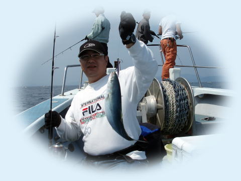 私が予想では60〜70mラインの漁礁に入るのだろうと思っていたのですが、船はそれよりもさらに北西の91mラインに入り、本日最初の流しが開始となりました。GW中はハマチが一船で5〜600尾という入れ食い状態でしたが、今日は様相が一変し、渋い感じです。(翌日にわかったのですが、他県のキンチャク船団がごっそりと魚をさらえて行ったそうです。) それでもトモのアングラーが40cmほどのハマチをヒット!戦中の雰囲気に勢いがつき始めたのですが、残念ながら、一流し目はこの一尾のみで終了。ポイントへ入り直し、何度か小移動しながら流し続けます。あちこちでポツリポツリとハマチが上がり始めました。私はガイア社のソーリー180gで頑張りましたが、あまりにブランクが長かったので、余計なところに力が入っていたのでしょう、シャクリがぎこちなく、過度の疲労に襲われ、ジグをハオリロング130gにチェンジ。50gの差ではありますが、非常に軽く感じます。引き抵抗の少ない形状も感覚を取り戻せないでいた私には大助かりでした。10:25、待望のファーストヒット! いいですねえ、ハマチいえどもブルーランナーのトルクフルなファイト。最高です。70m当たりのヒットでしたので、久しぶりの青物とのファイトを堪能しました。さらに10:40、91mラインでジグを回収中に、水面から15mくらいのところで2尾目がヒットしました。