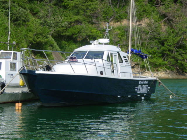 流石に新造船だけあって綺麗!コジンマリシタその船は如何にも釣らせてくれそうな雄姿!そそくさとタックルや荷物を積み込んで8:00出発。出航から15分も経たないうちにもう第一ポイントに到着。船はピタリとポイントに着けられる。どこかのポイントに着いても更にウロウロを繰り返す船とは大違い!魚探には良い反応が出るもののノーヒット。数回のキャスト&リトリーブで移動。第二、第3ポイントでも玉砕![]()