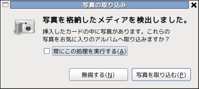 システム-設定-リムーバブル・ドライブとメディアの設定-カメラ、でデジタル・カメラの項で、