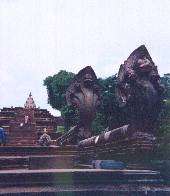 長く伸びた石畳の先に長い石段。石段の踊り場にはNagaという5頭のヘビがいくつも鎌首をもたげてこの寺院を守っている。