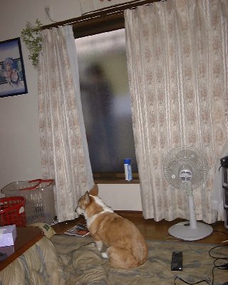 干してる間は"おすわり"で待ってます。おなかすいたよ〜…