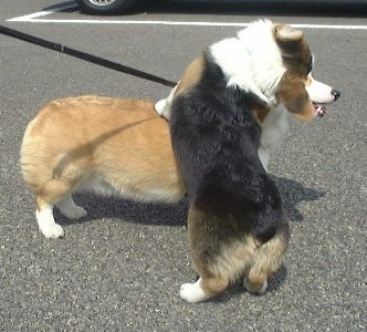 | 関空近くの"リンクウプレミアムアウトレット"でルークと親子オフ2でした。 子犬達は会うとマウンティングから入るのですが習性なんでしょうか…? |