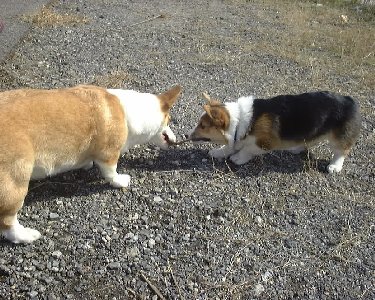 小枝の取り合い引っ張りあいっこ |