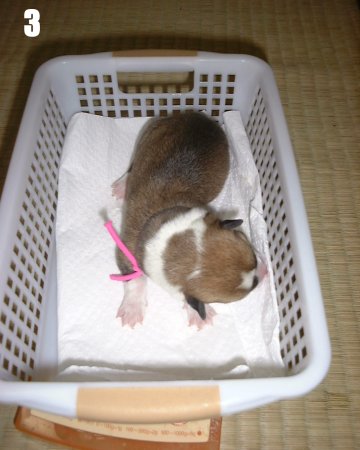 これは4番目までが産まれたところ…それぞれが肩に手を乗せて おっぱいを飲んでるのわかります? |