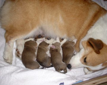 約5時間の奮闘の末、6頭の子犬が産まれました。おめでとう"あいん"ちゃん。