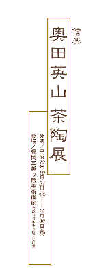 江戸時代より続く窯元一族の家に生まれた奥田英山先生は、父上に師事して陶芸の修行、研鑚を積まれる一方、茶人として茶道をも深く追究されておられます。