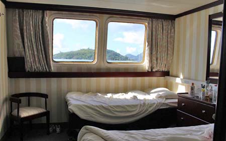 クルーズのコースは、先ずマヘ島ビクトリア港から乗船、次の日はキューリーズ島へ(マングローブの林、ゾウガメなど、昼食は浜でバーベキュー)、次の日はクーザン島(バード・ウォッテイング)からアンス・ラチオ(シュノーケリング等)、次の日はアリッド島(バード・ウォッテイング)からサン・ピエール島(シュノーケリング等)、次の日はモワイヨンヌ島(シュノーケリング等)、そしてマヘ島へ戻る、となっている。これが予定のコースである。
