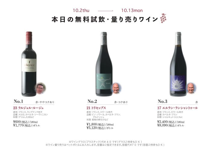 10月2日(木)〜10月13日(月)の量り売りリスト