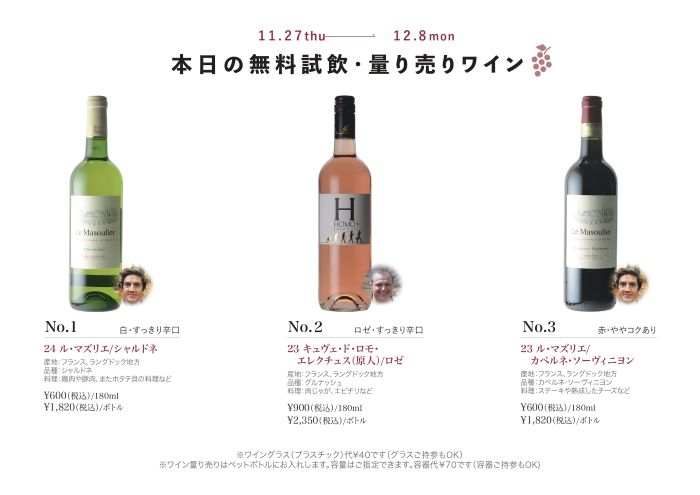 11月27日(木)〜12月8日(月)の量り売りリスト