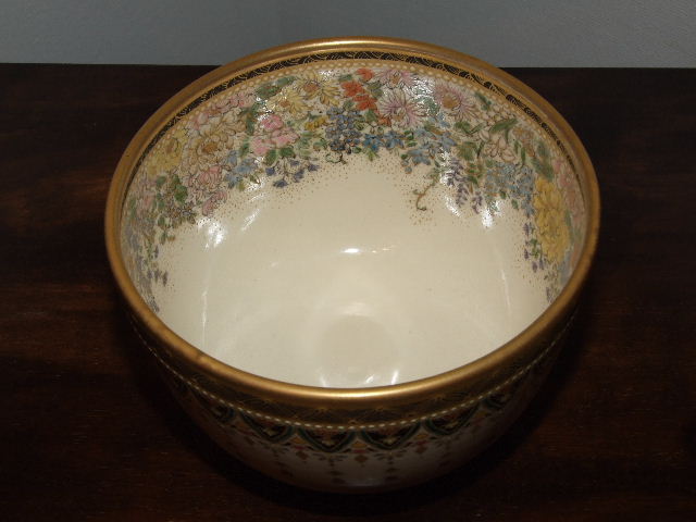 | Tea bowl : Kyo-Satsuma | Fine pattern of the side | Tea bowl: Kyo-Satsuma | Fine flower pattern of the inside |