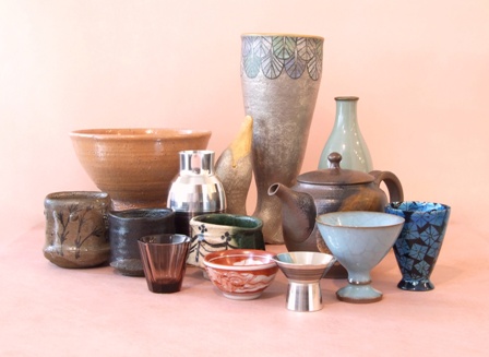 茶碗、花生けなどの茶道具や酒のうつわから、普段使いのカップ&ソーサー、そば猪口、飯碗に至るまで、そばに置いて飾りたい、使いたいうつわの数々です。
